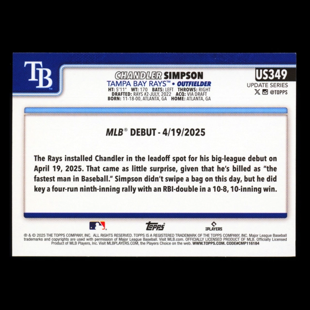 Chandler Simpson 2025 Topps Update Rookie Debut Rays