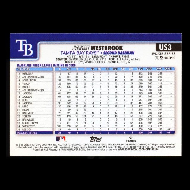 Jamie Westbrook RC 2025 Topps Update Rookie Rays