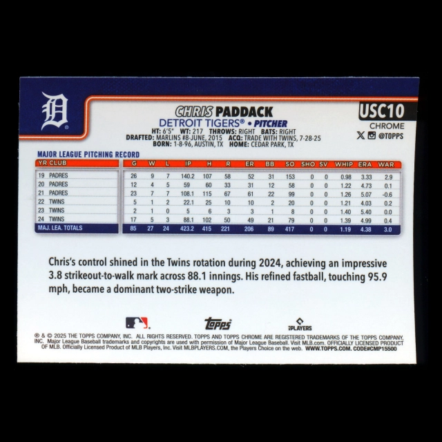 Chris Paddack 2025 Topps Chrome Update Tigers
