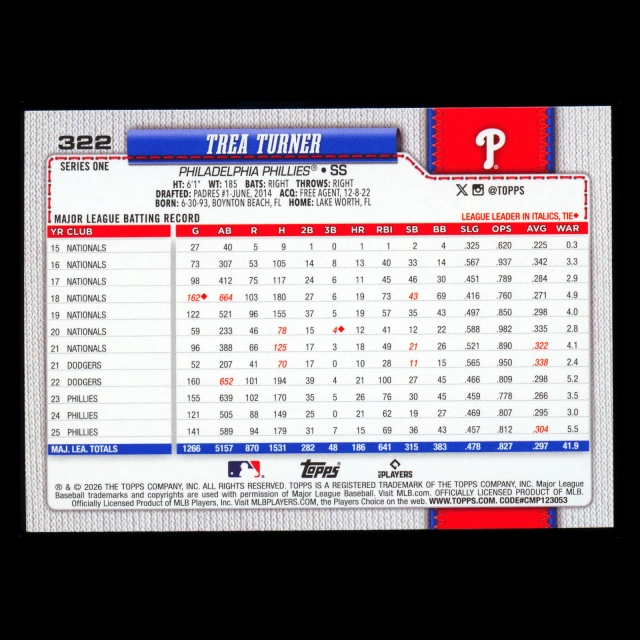 Trea Turner 2026 Topps Rainbow Foil Phillies