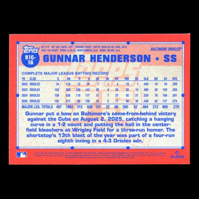 Gunnar Henderson 2026 Topps '91 Topps Silver Pack Chrome Orioles