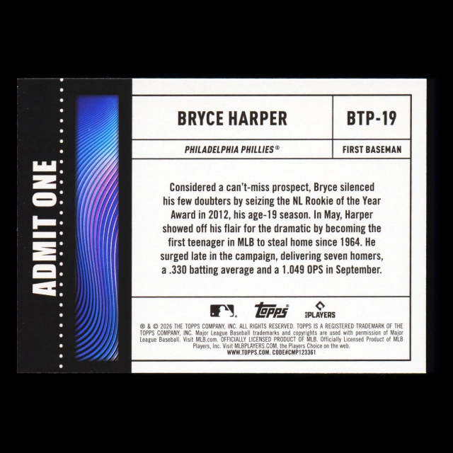 Bryce Harper 2026 Topps Big Ticket Players Phillies