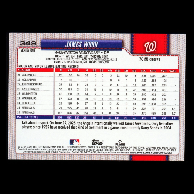 James Wood 2026 Topps Rainbow Foil Nationals