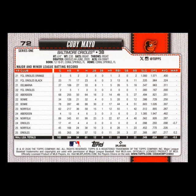 Coby Mayo 2026 Topps Future Stars Orioles
