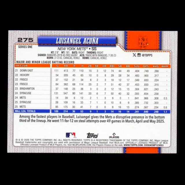 Luisangel Acua 2026 Topps Future Stars Mets