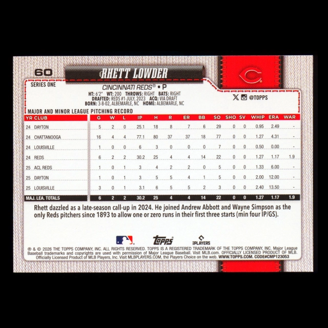 Rhett Lowder 2026 Topps Future Stars Reds