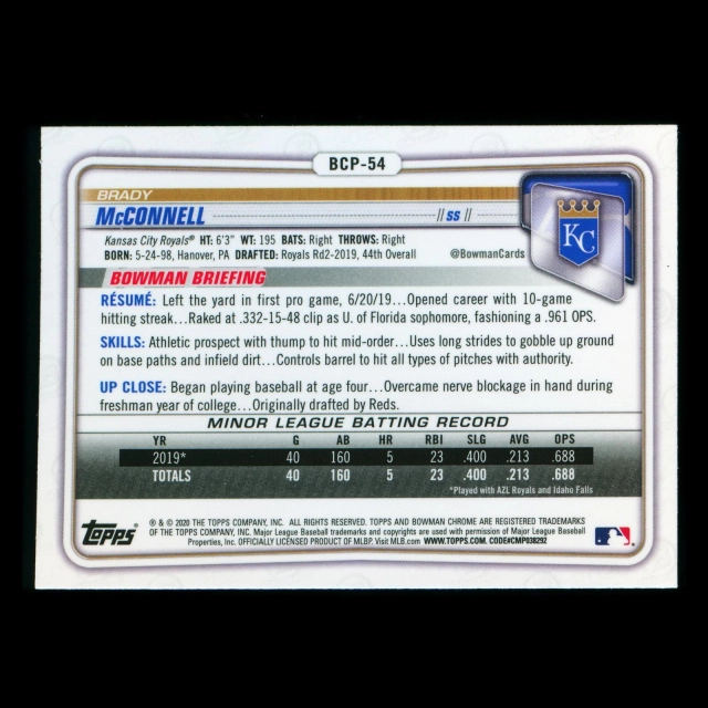 Brady McConnell 2020 Bowman Chrome Prospect Royals