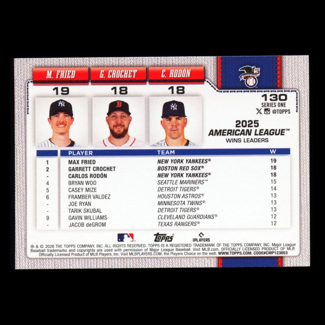 Fried - Crochet - Rodn 2026 Topps League Leaders Yankees - Red Sox - Yankees