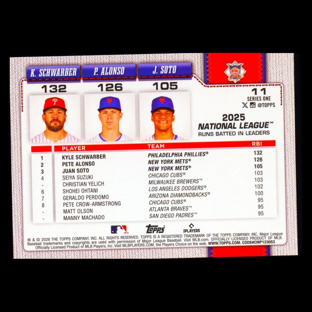 Alonso - Kyle Schwarber - Soto 2026 Topps League Leaders Mets - Phillies - Mets