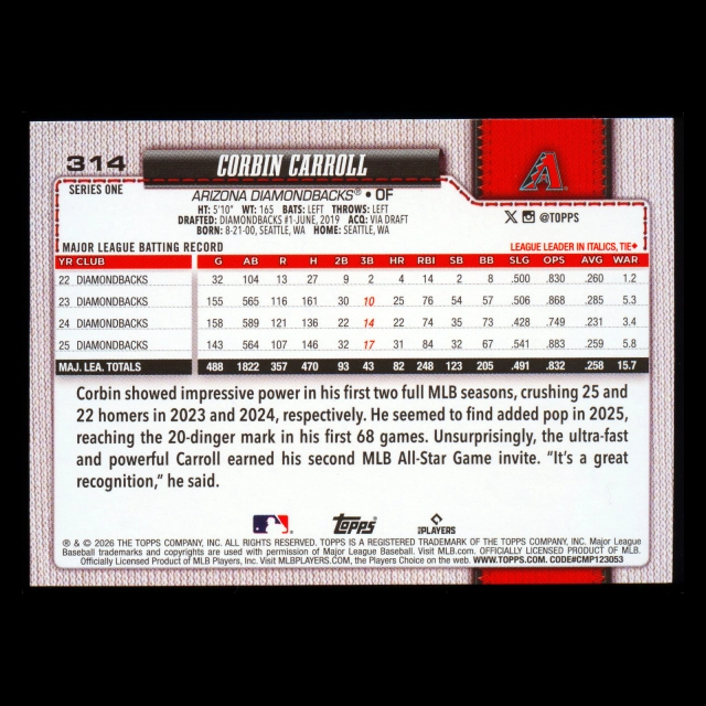 Corbin Carroll 2026 Topps Diamante Foil Diamondbacks