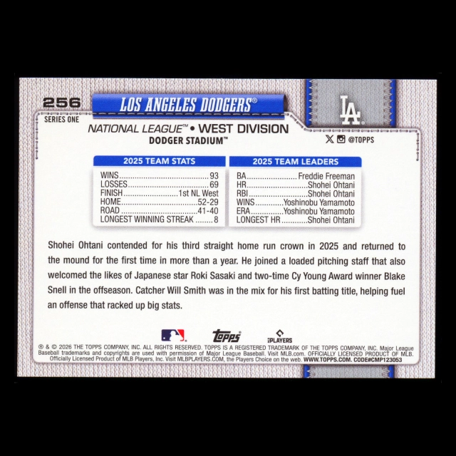 Los Angeles Dodgers 2026 Topps Team Card Dodgers