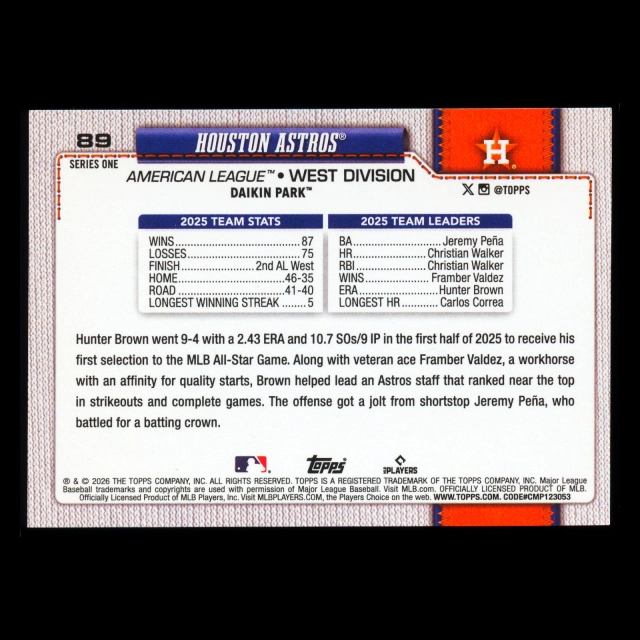 Houston Astros 2026 Topps Team Card Astros