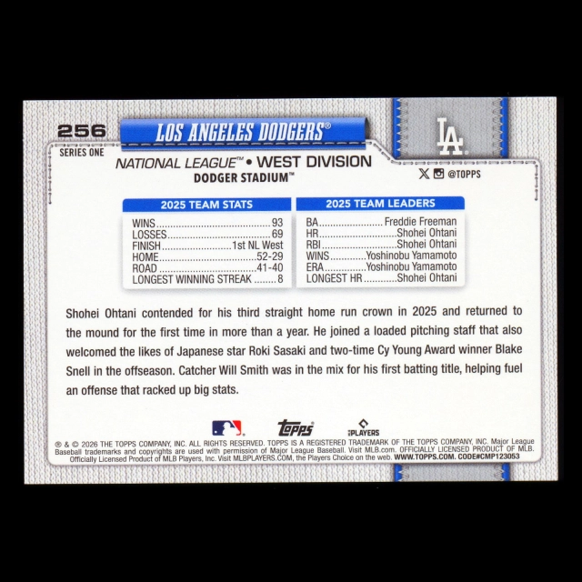 Los Angeles Dodgers 2026 Topps Team Card Dodgers