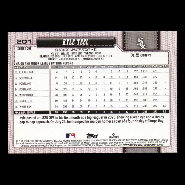 Kyle Teel RC 2026 Topps Rookie White Sox
