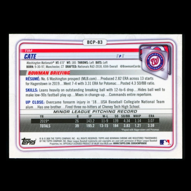 Tim Cate 2020 Bowman Chrome Prospect Nationals