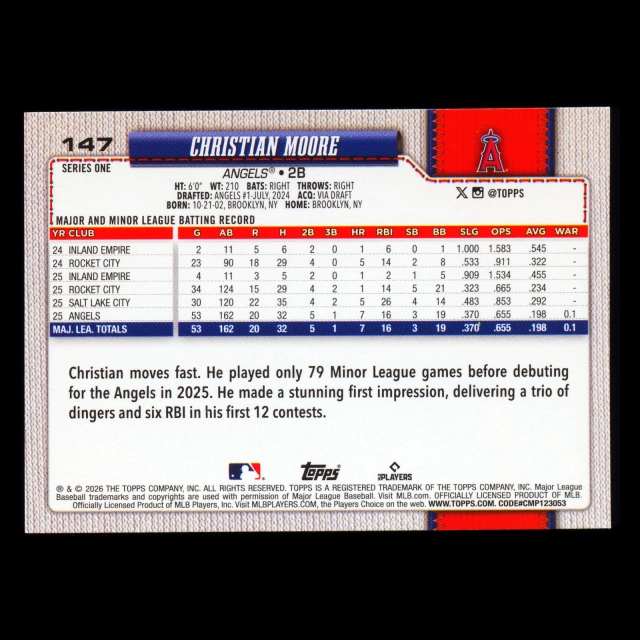 Christian Moore RC 2026 Topps Rookie Angels