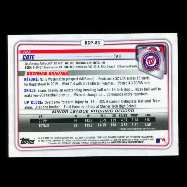 Tim Cate 2020 Bowman Chrome Prospect Nationals