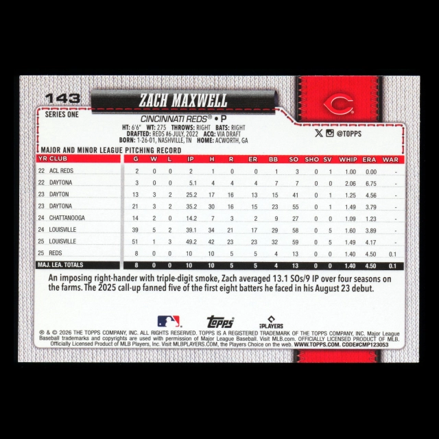Zach Maxwell RC 2026 Topps Rookie Reds