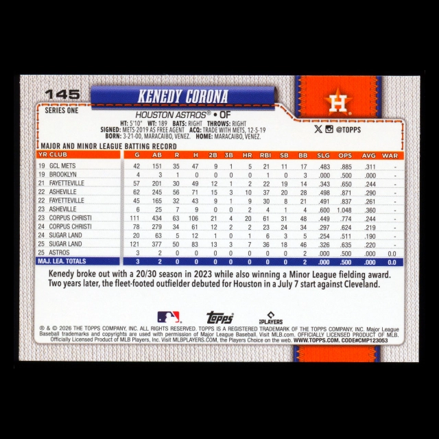 Kenedy Corona RC 2026 Topps Rookie Astros
