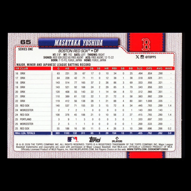 Masataka Yoshida 2026 Topps Red Sox