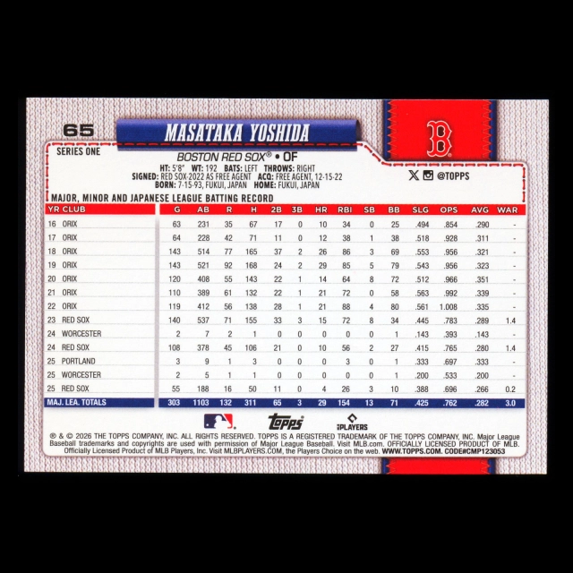 Masataka Yoshida 2026 Topps Red Sox