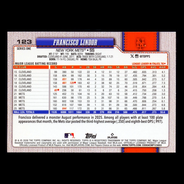 Francisco Lindor 2026 Topps Mets