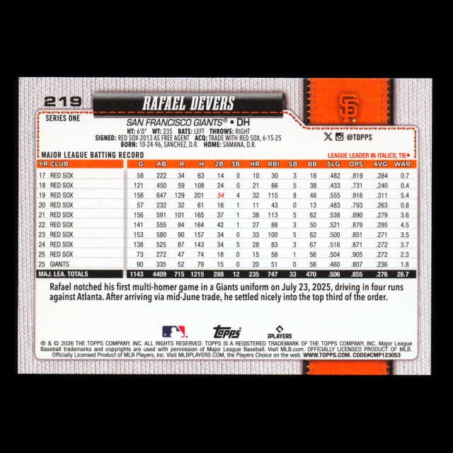 Rafael Devers 2026 Topps Giants