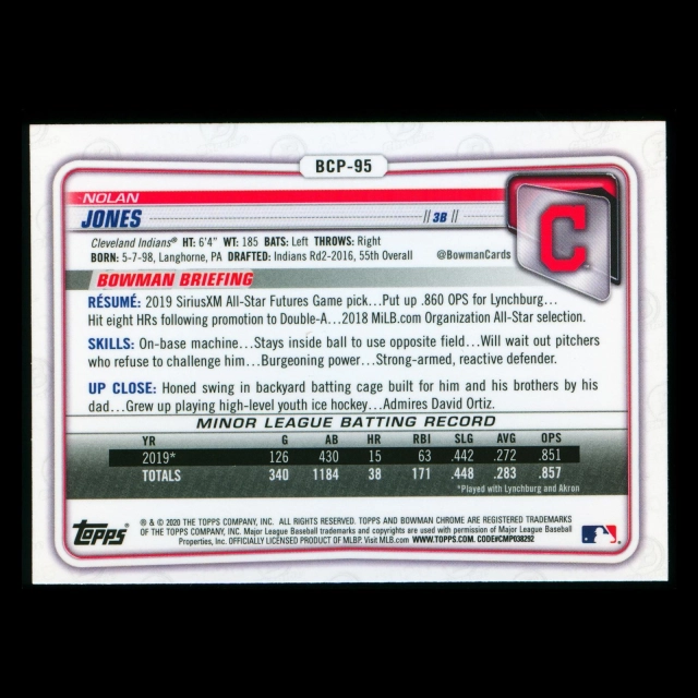 Nolan Jones 2020 Bowman Chrome Prospect Indians
