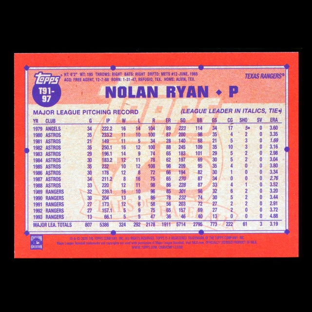Nolan Ryan 2026 Topps '91 Topps Rangers