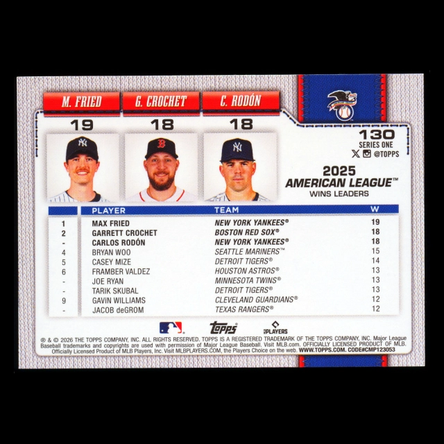 Fried - Crochet - Rodn 2026 Topps League Leaders Yankees - Red Sox - Yankees