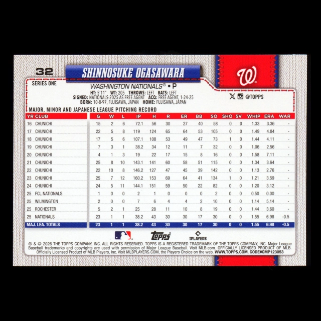 Shinnosuke Ogasawara RC 2026 Topps Rookie Nationals