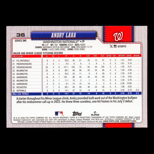 Andry Lara RC 2026 Topps Rookie Nationals