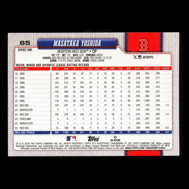 Masataka Yoshida 2026 Topps Red Sox