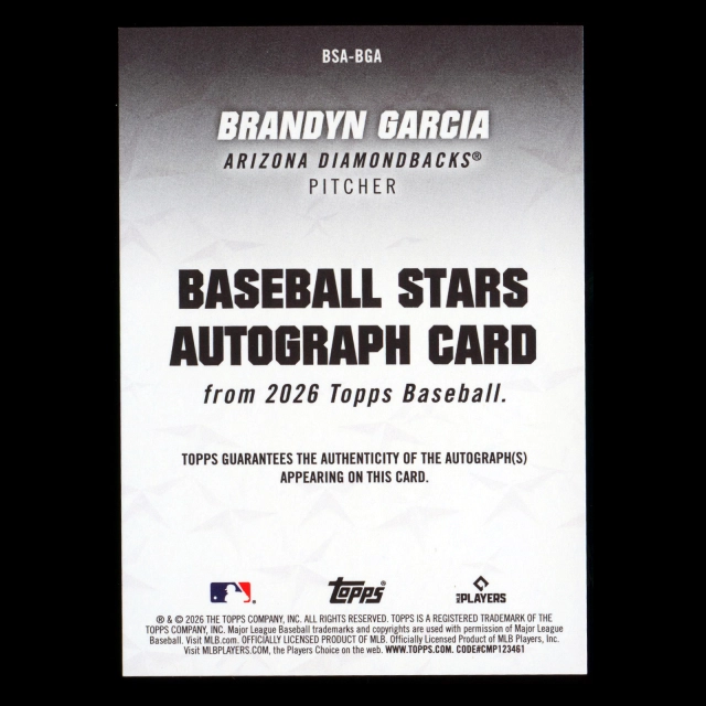 Brandyn Garcia 2026 Topps Stars Autographs Diamondbacks