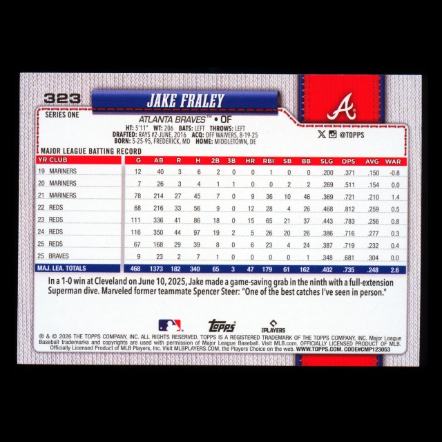 Jake Fraley 2026 Topps Diamante Foil Braves