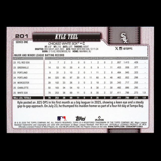 Kyle Teel RC 2026 Topps Diamante Foil Rookie White Sox