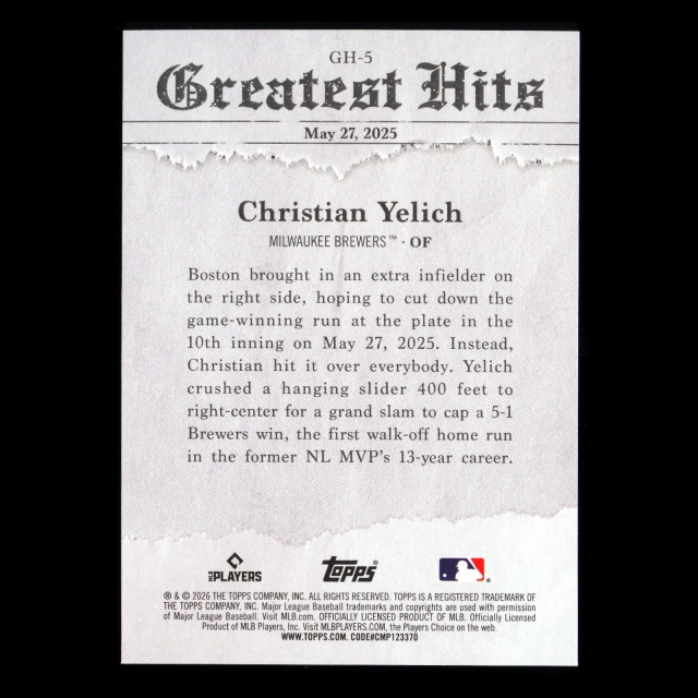 Christian Yelich 2026 Topps Greatest Hits Brewers