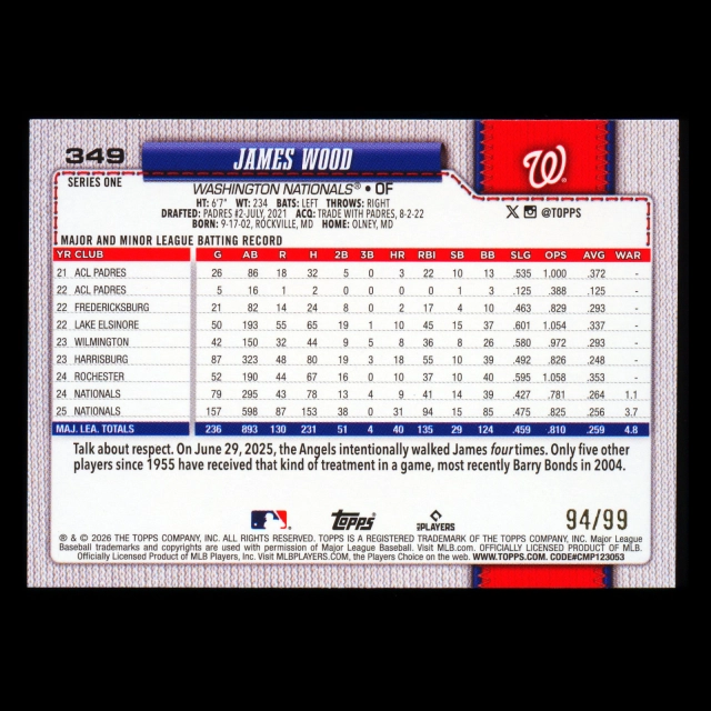 James Wood 2026 Topps Green Holo Foil Nationals 94/99
