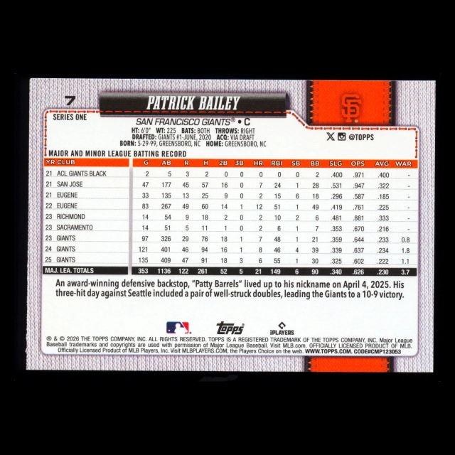Patrick Bailey 2026 Topps Holo Foil Giants