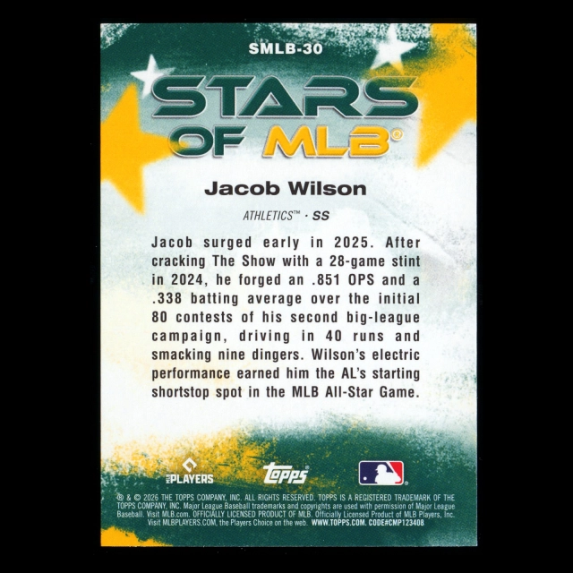 Jacob Wilson 2026 Topps Stars Of MLB Athletics