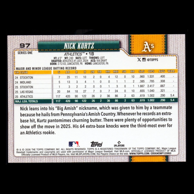 Nick Kurtz 2026 Topps All-Star Rookie Athletics