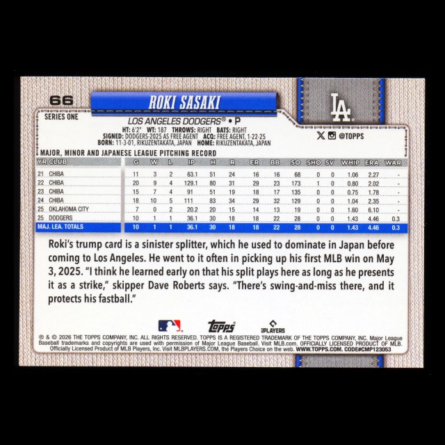 Roki Sasaki 2026 Topps Future Stars Dodgers