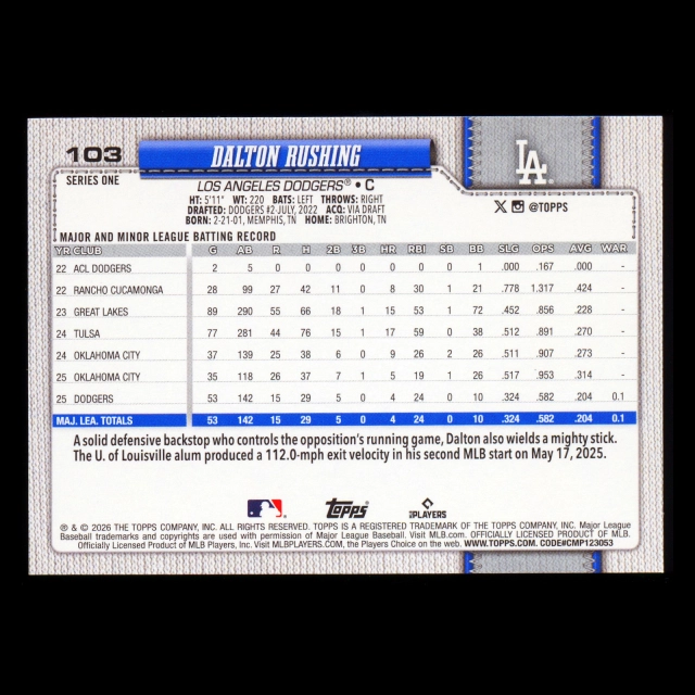 Dalton Rushing 2026 Topps Future Stars Dodgers