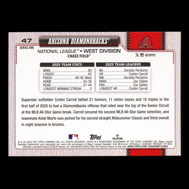 Arizona Diamondbacks 2026 Topps Team Card Diamondbacks