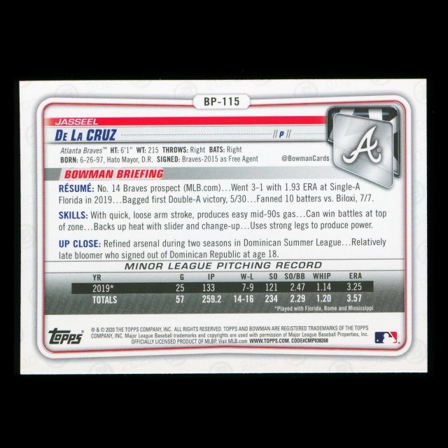 Jasseel De La Cruz 2020 Bowman 1st Bowman Prospect Braves