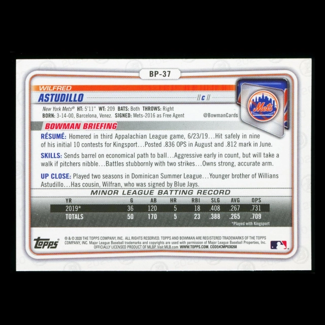 Wilfred Astudillo 2020 Bowman 1st Bowman Prospect Mets