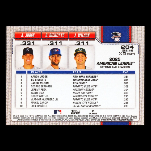 Wilson - Judge - Bichette 2026 Topps Leaders Athletics - Yankees - Blue Jays