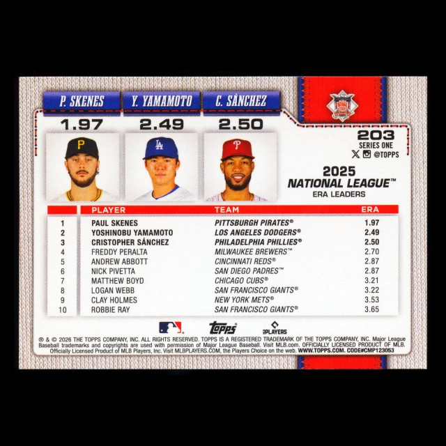 Yamamoto - Skenes - Snchez 2026 Topps Leaders Dodgers - Pirates - Phillies