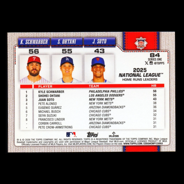 Ohtani - Schwarber - Soto 2026 Topps League Leaders Dodgers - Phillies - Mets