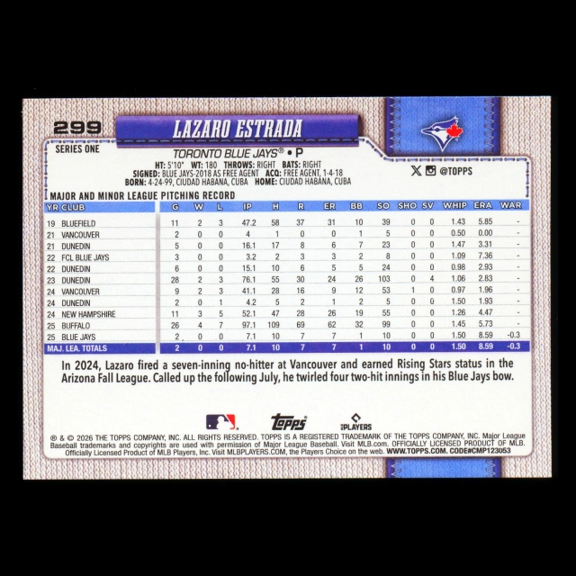 Lazaro Estrada RC 2026 Topps Rookie Blue Jays
